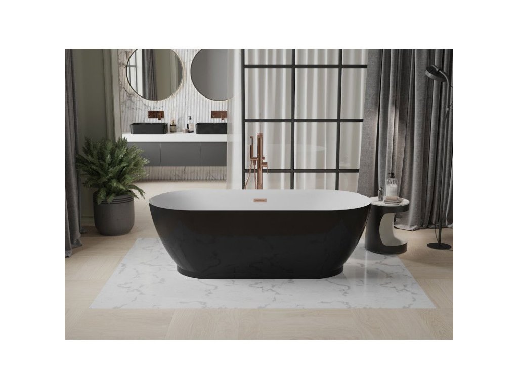 Mexen Roxy voľne stojaca vaňa 180 x 85 cm, biela/čierna, prepad z brúsenej medi - 51201808575-65