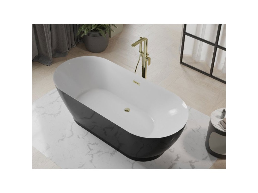 Mexen Roxy voľne stojaca vaňa 180 x 85 cm, biela/čierna, zlatý prepad - 51201808575-50