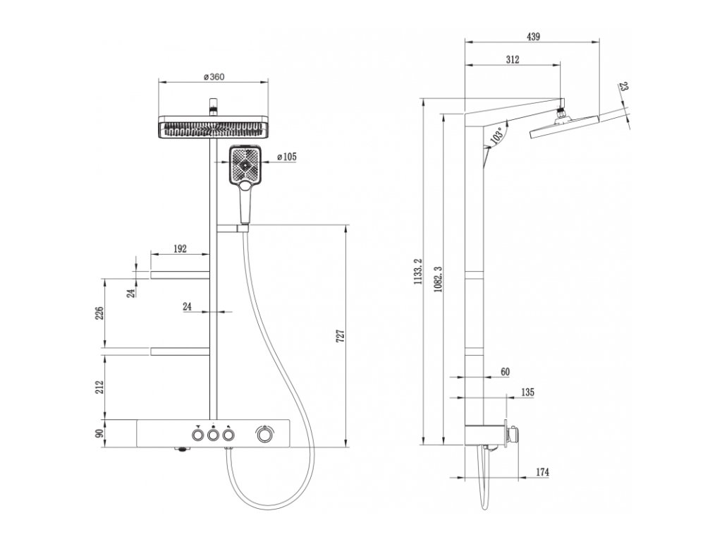\nVeľkosť dažďovej sprchy: 230 x 360 mm
