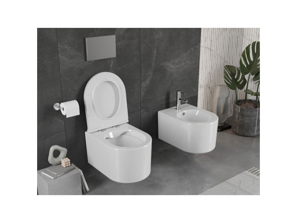 Mexen Sofia WC misa bez ráfika s voľne stojacim štíhlym sedadlom, duroplast, biely lesk - 30540500