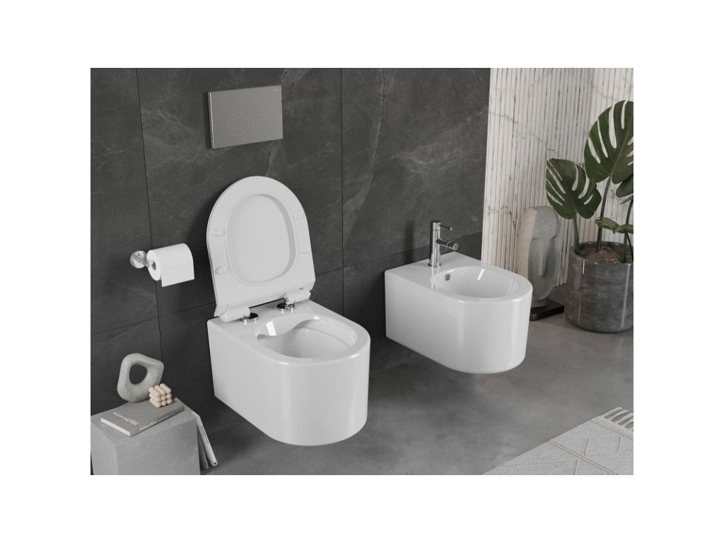 Mexen Sofia závesný WC záchod, splachovanie Rimless, s doskou duroplast pomaly padajúcou SLIM, biela - 30540100