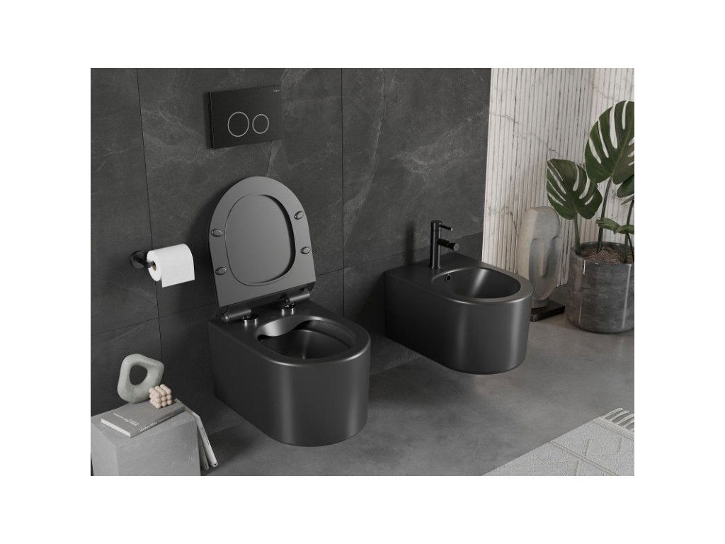 Mexen Sofia závesný WC záchod, splachovanie Rimless, s doskou duroplast pomaly padajúcou SLIM, čierna matná - 30540185