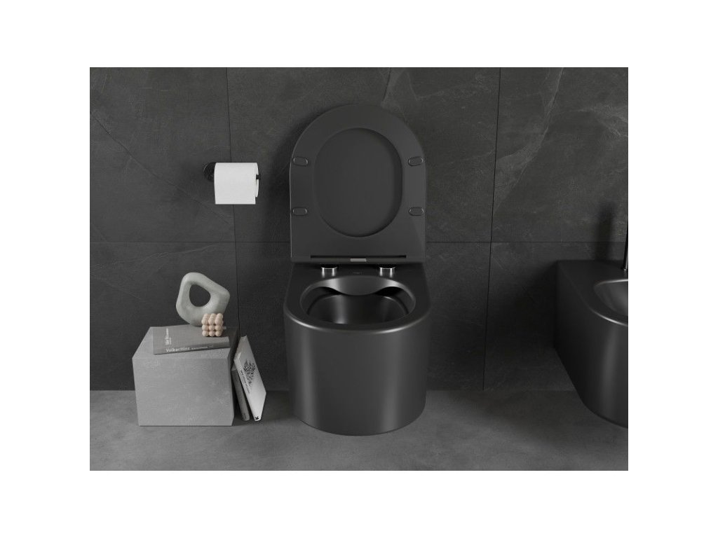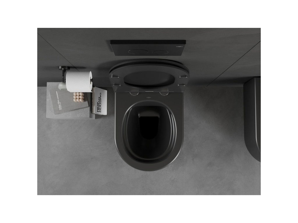 Mexen Sofia závesný WC záchod, splachovanie Rimless, s doskou duroplast pomaly padajúcou SLIM, čierna matná - 30541085