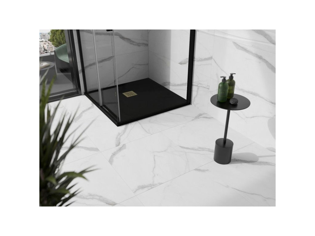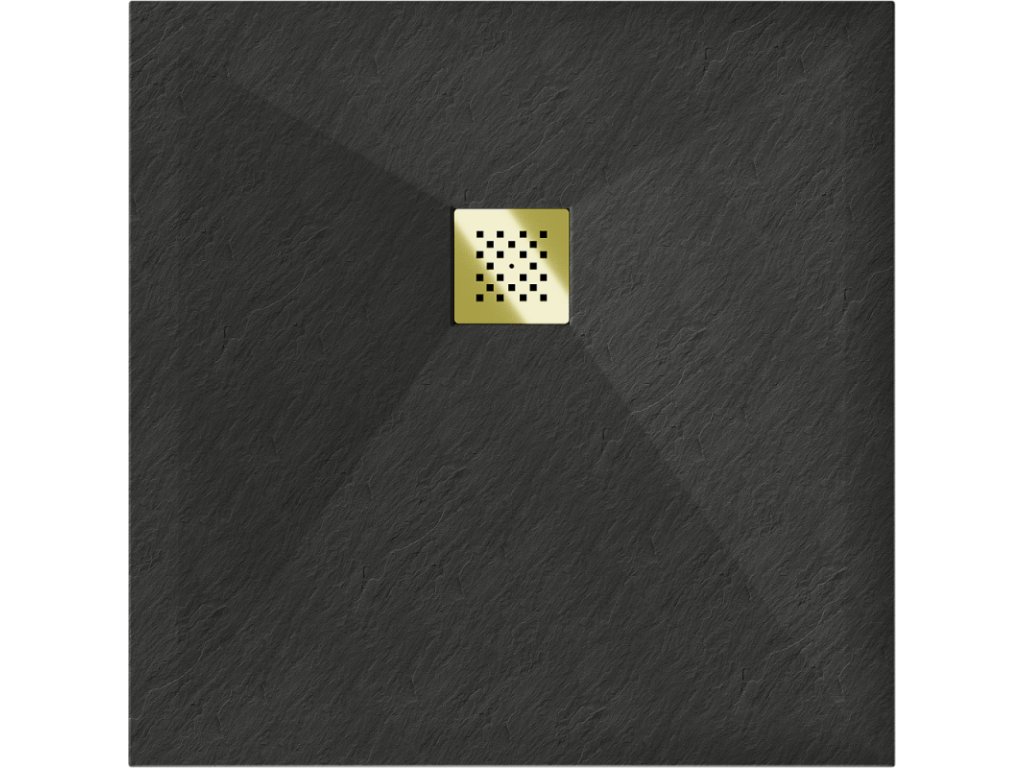 Mexen Stone+ štvorcová kompozitná sprchová vanička 100 x 100 cm, čierna, zlatá mriežka - 44701010-G