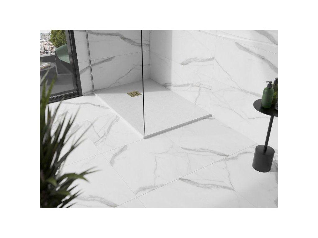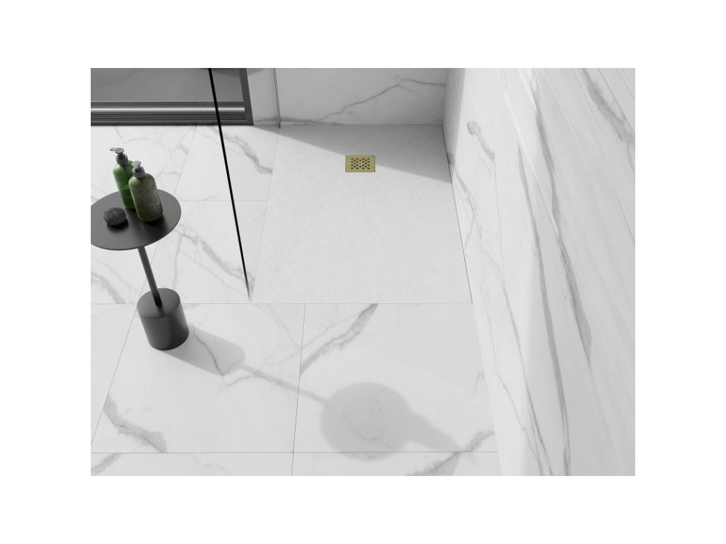 Štvorcová kompozitná sprchová vanička 120x100 cm je dokonalým riešením pre vašu kúpeľňu. Jej biela farba a zlatá mriežka pôsobia elegantne. Vďaka výrobe z minerálneho kompozitu je sprchová vanička nielen odolná, ale aj nedeformovateľná. Mimoriadne štíhly dizajn umožňuje inštaláciu do podlahy aj na podlahu. Okrem toho poskytuje maximálnu stabilitu vďaka svojej odolnosti voči nárazom. Na jednoduché používanie je súčasťou balenia sifón s horným čistením a odtokom s priemerom 90 mm.Dodatočné parametre