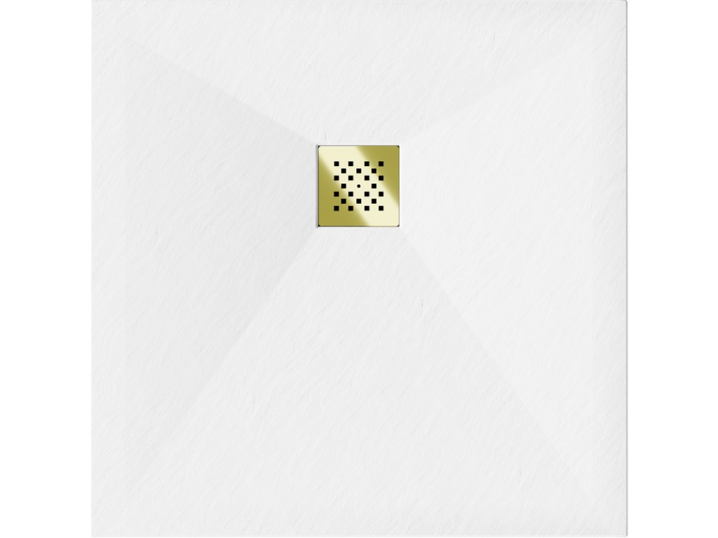 Mexen Stone+ štvorcová kompozitná sprchová vanička 70 x 70 cm, biela, zlatá mriežka - 44107070-G