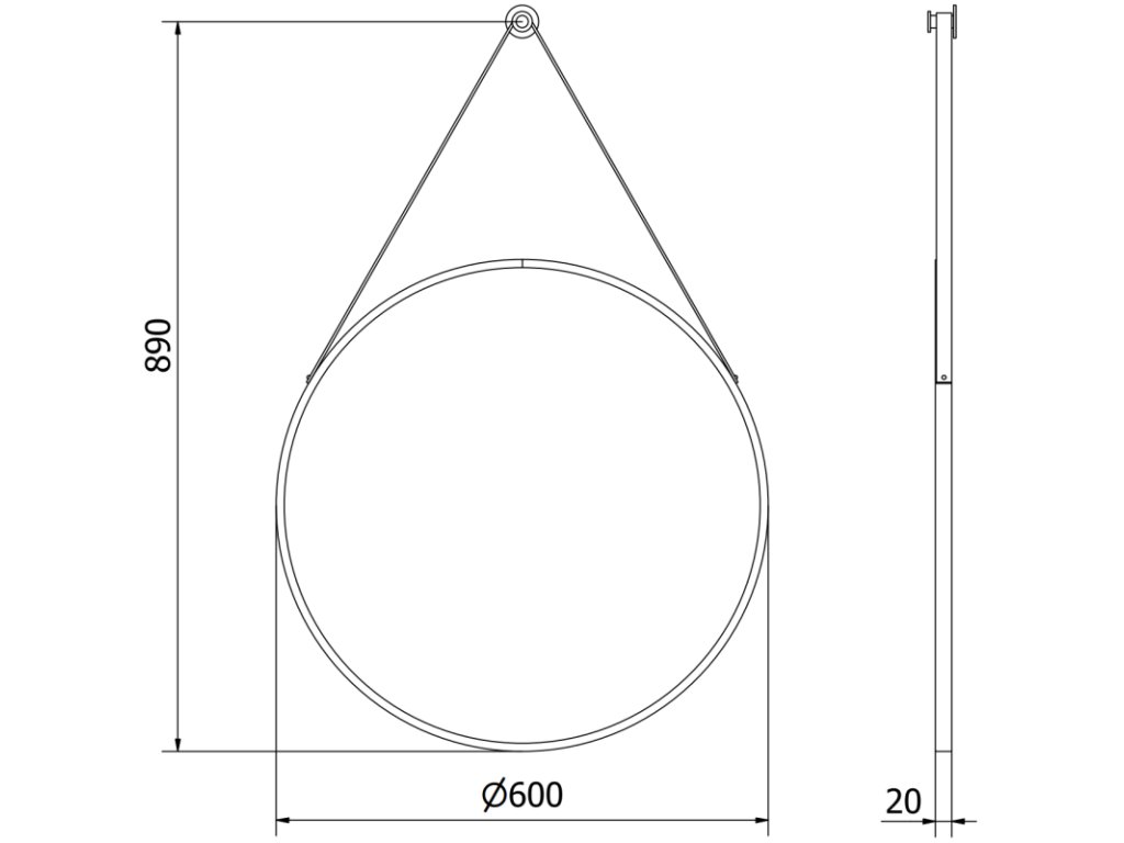 Mexen String okrúhle kúpeľňové zrkadlo 60 cm, čierny rám - 9854-060-060-000-70