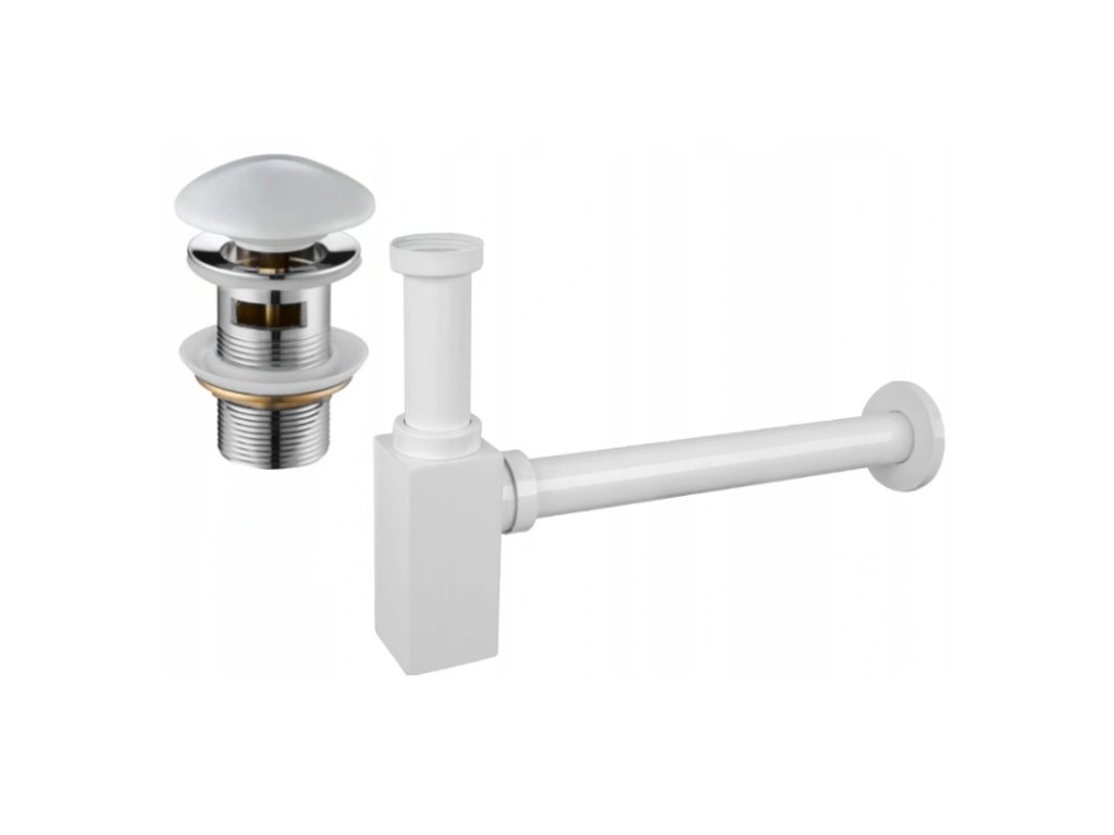 Mexen štvorcový umývadlový sifón s keramickou zátkou, s prepadom, biely - 7992060-25