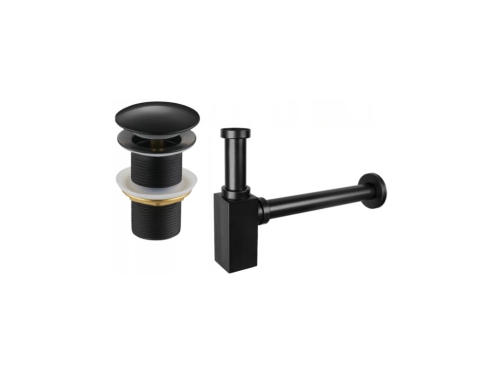 Mexen štvorcový umývadlový sifón s klikacou zátkou, bez prepadu, čierny - 7991060-70