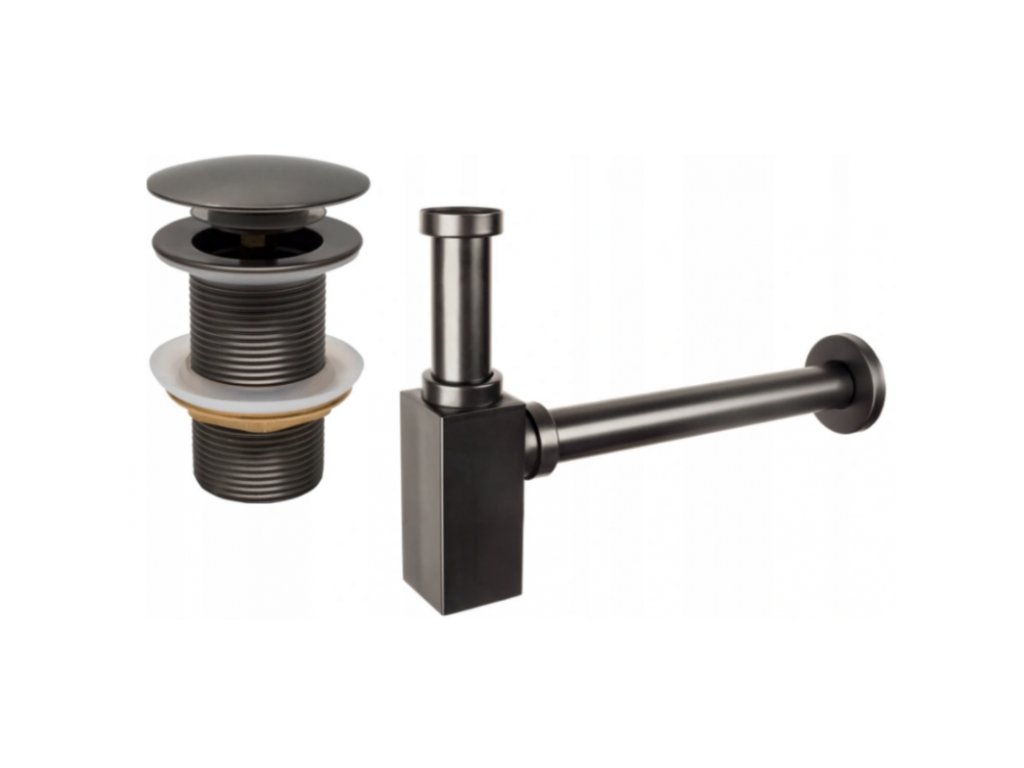 Mexen štvorcový umývadlový sifón s klikacou zátkou, bez prepadu, grafit - 7991060-66