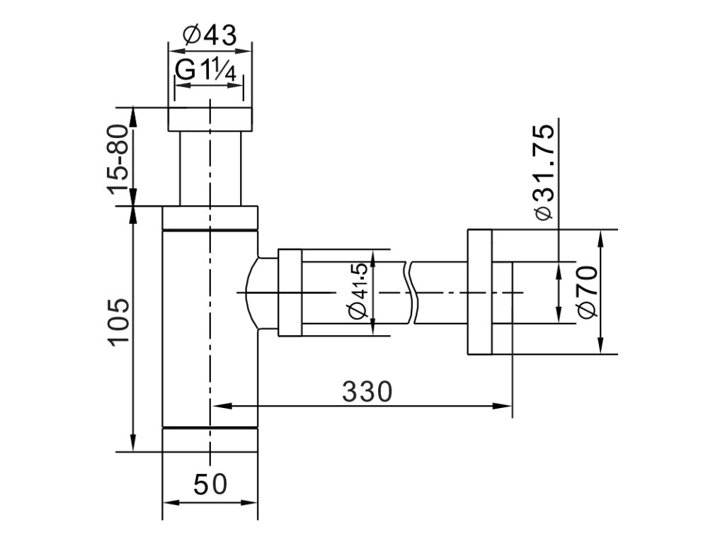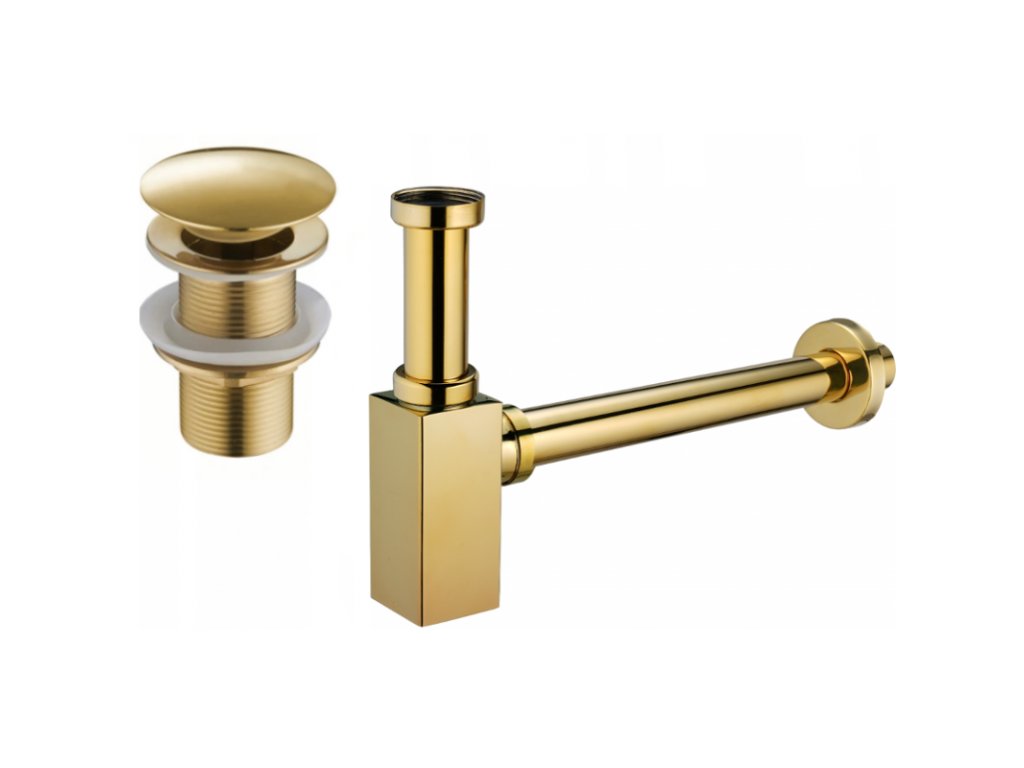 Mexen štvorcový umývadlový sifón s klikacou zátkou, bez prepadu, zlatý - 7991060-50