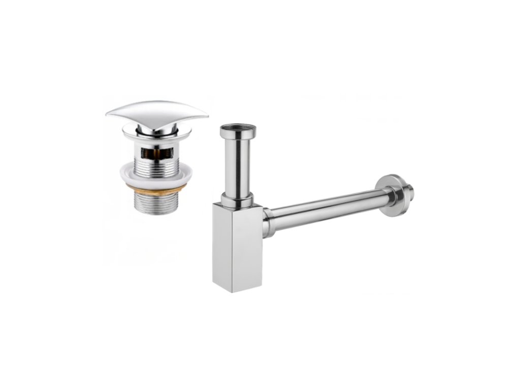 Mexen štvorcový umývadlový sifón s klikacou zátkou, prepad, chróm - 7992060-00