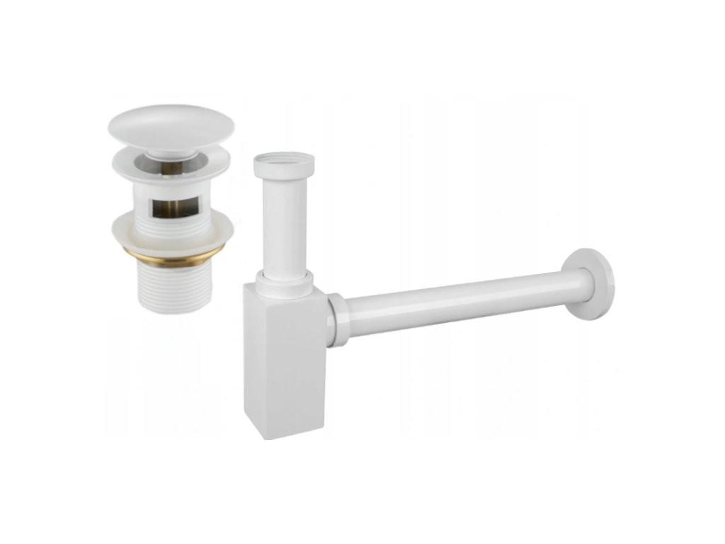 Mexen štvorcový umývadlový sifón so zátkou na zacvaknutie, s prepadom, biely - 7992060-20