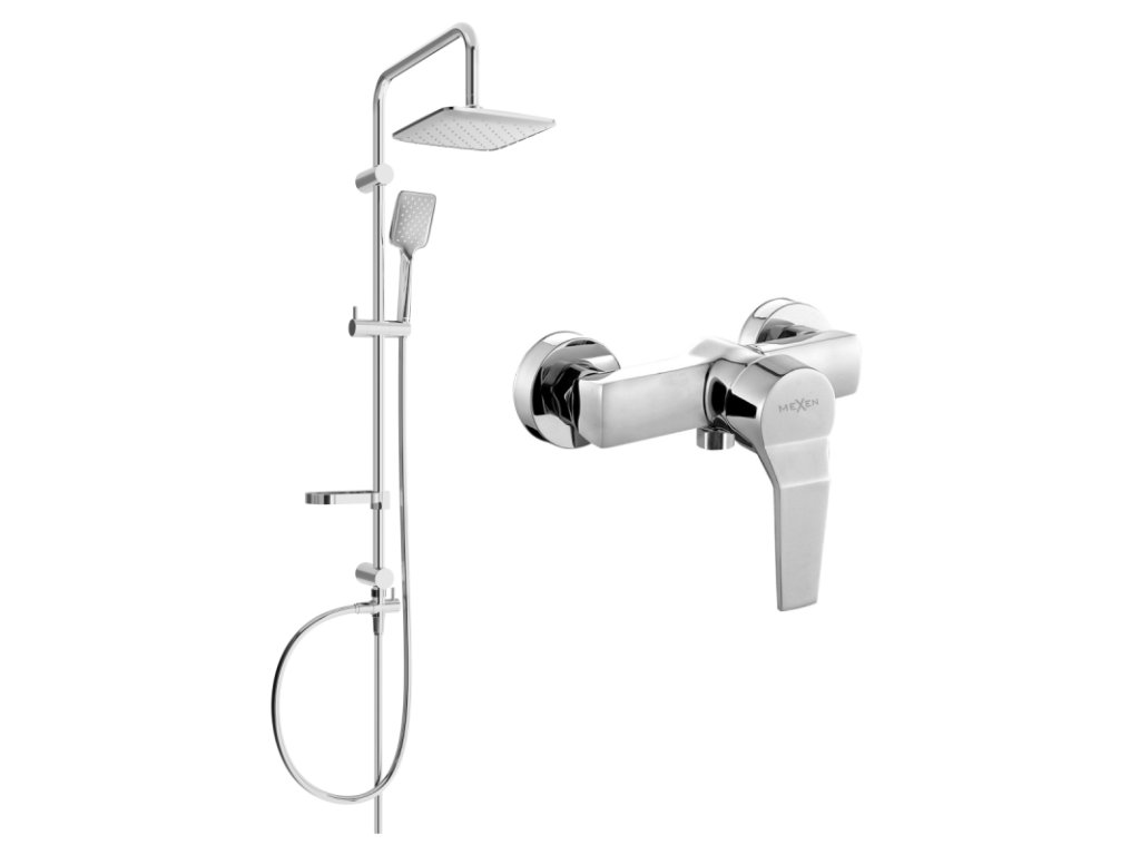 Mexen Sven nástenná sprchová súprava s dažďovou sprchou, sprchová batéria Caro, chróm - 746640262-00