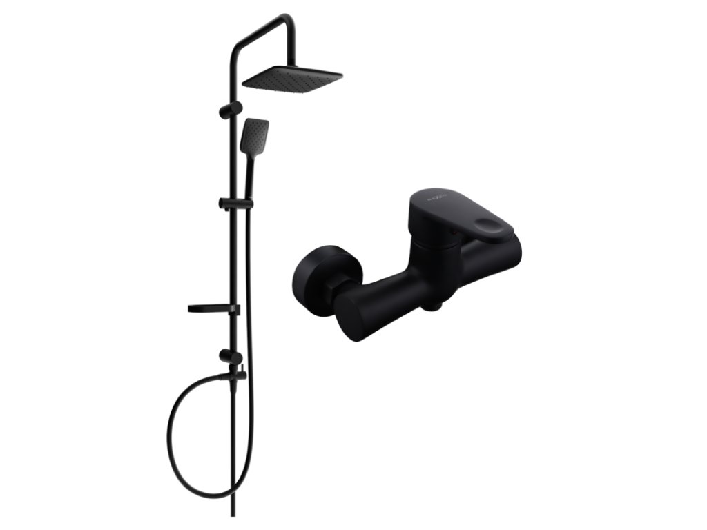 Mexen Sven nástenná sprchová súprava s dažďovou sprchou, sprchová batéria Kama, čierna - 72540262-70