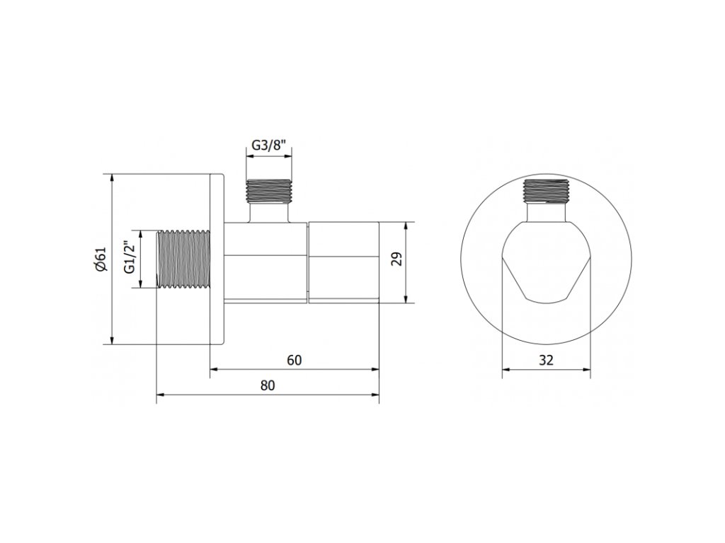 Mexen R2 uhlový ventil pre 1/2 "x3/8" batériu, chróm - 79972-00