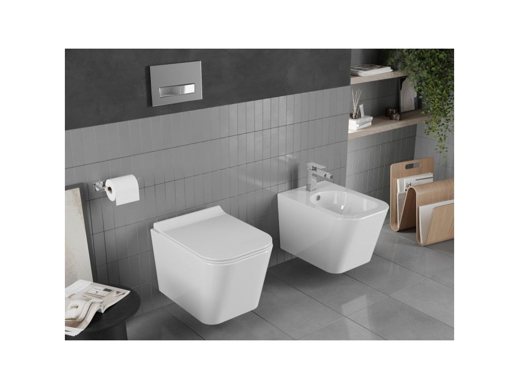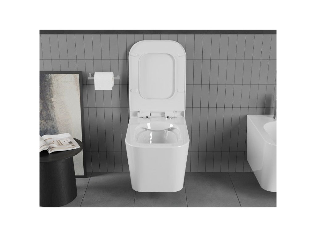 \n \n \nTechnické údaje: \n \nrozmery: 51x34,5x34 cm \n \ninštalácia: závesná \n \nsplachovací systém: Rimless (bez okrajov) \n \nfarba: biela \n \nmateriál: sanitárna keramika \n \ntyp dosky: pomaly padajúca \n \nfarba: biela \n \nmateriál: tvrdený plast \n \nSLIM verzia: áno \n \njednoduché uvoľnenie: áno \n \nkovové pánty: ánoDodatočné parametre
