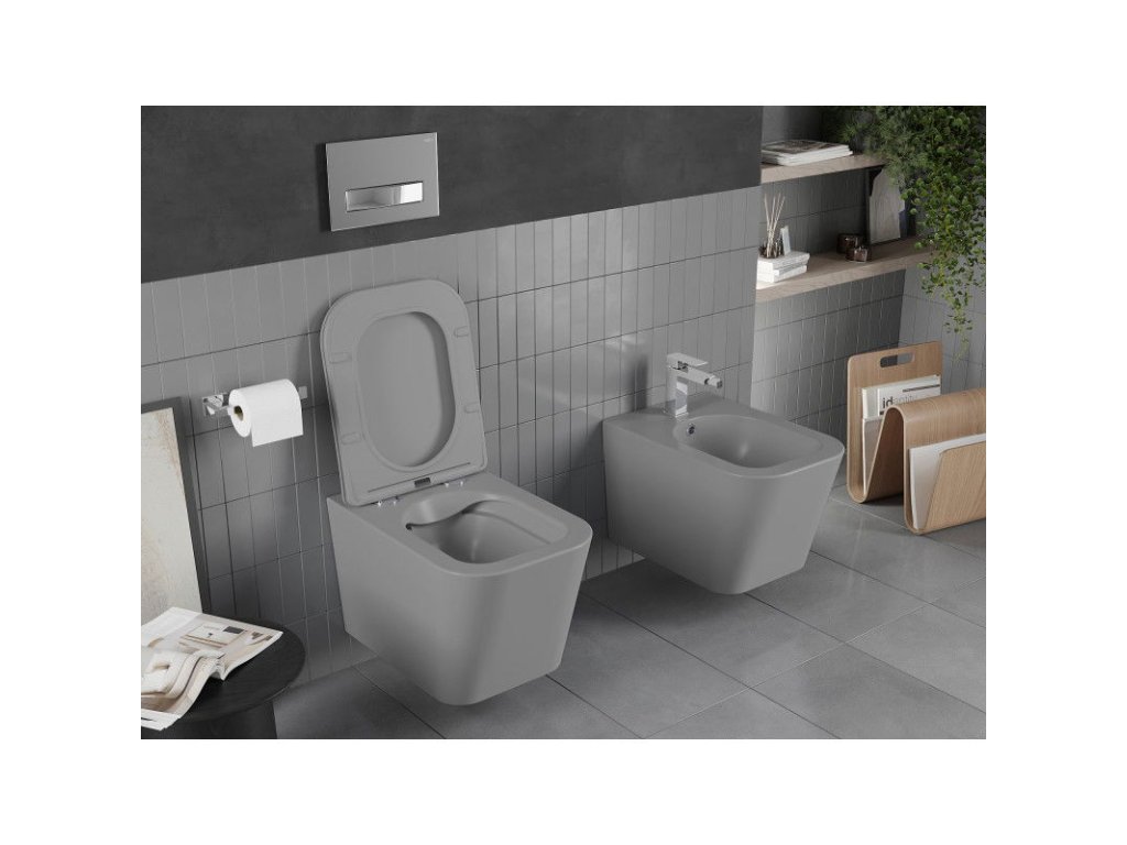 Mexen Teo závesný WC záchod, splachovanie Rimless, s doskou duroplast pomaly padajúcou SLIM, svetlo šedá matná - 30854061