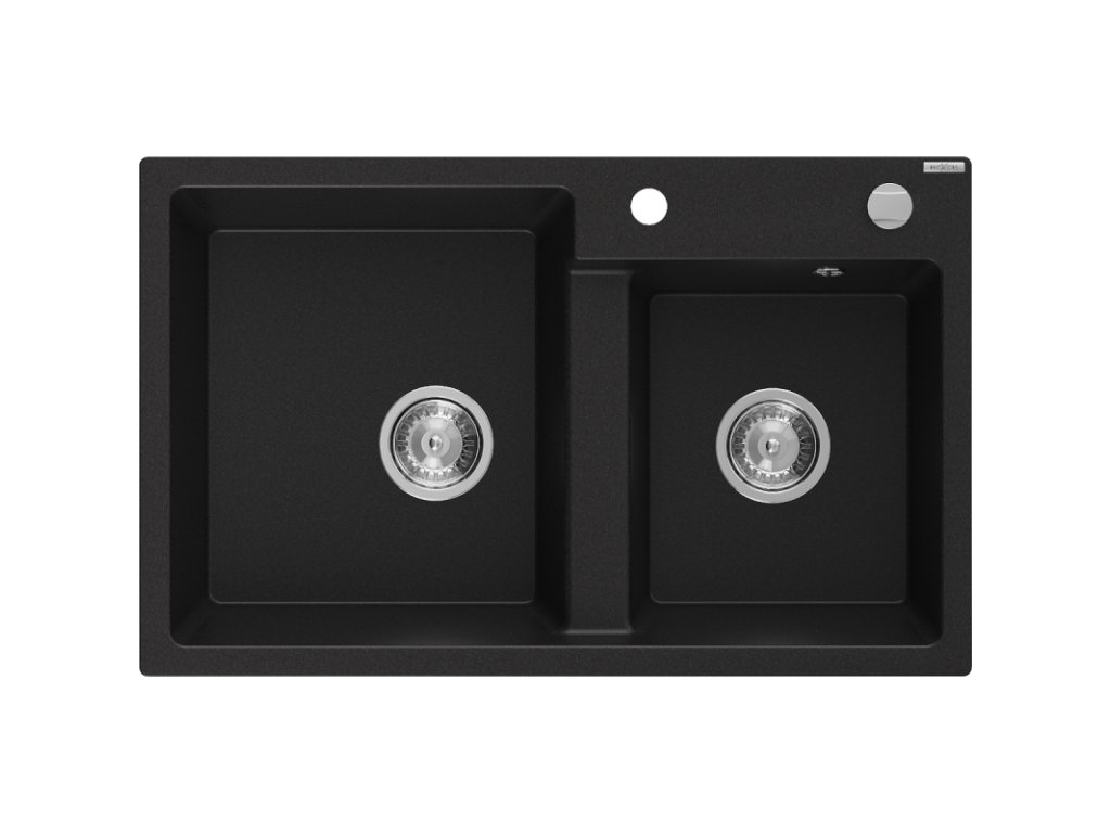 Mexen Tomas 2-komorový granitový drez 800 x 500 mm, čierny, chrómový sifón - 6516802000-77