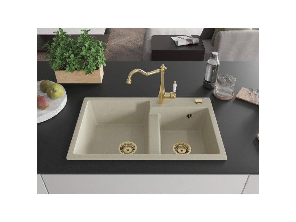 Mexen Tomas 2-komorový granitový drez s kuchynskou batériou Carla, béžová - 6516-69-670700-50