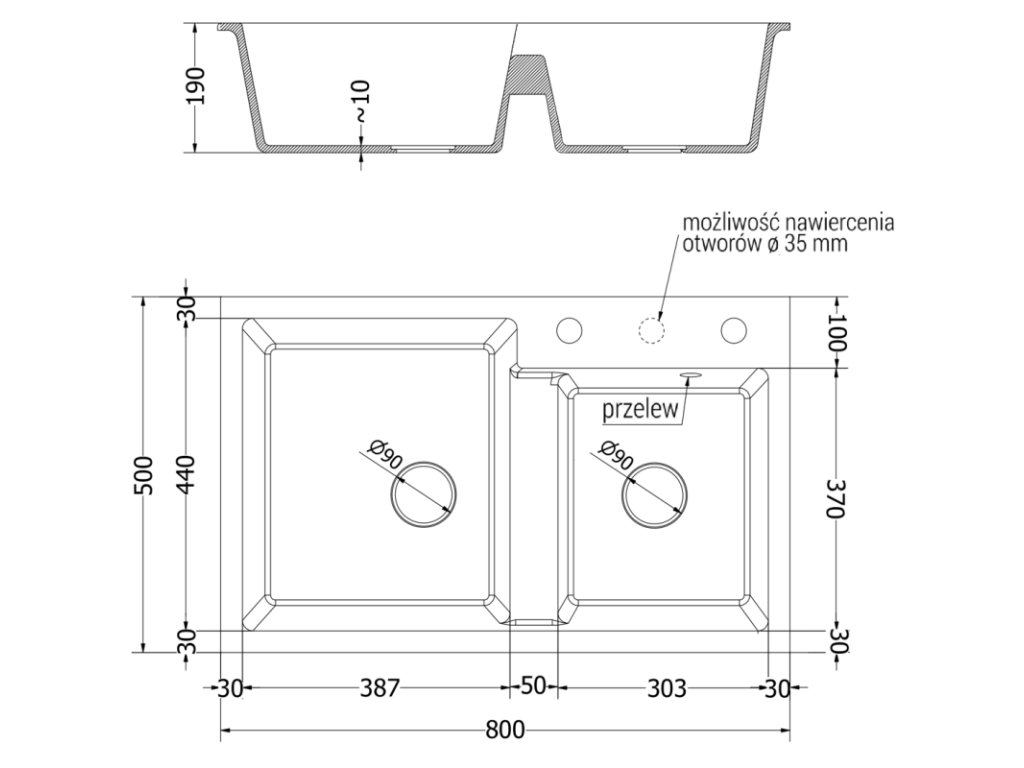 Jeden dodatočný vyfrézovaný otvor ø35 na vlastné dierovanie
