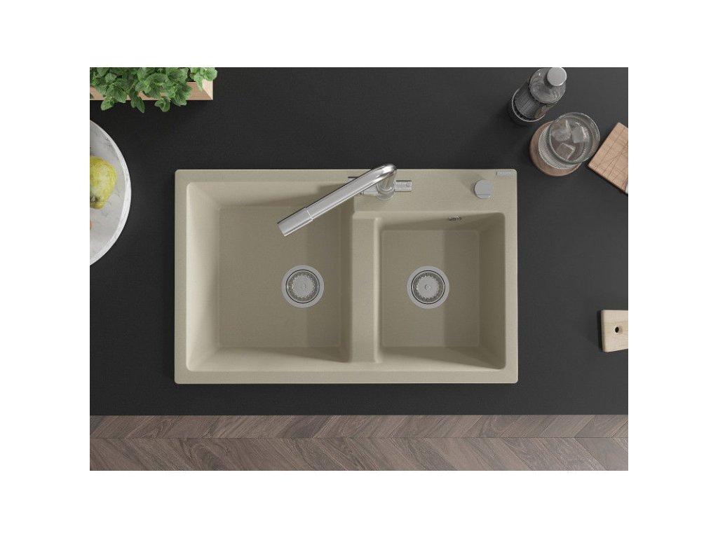Mexen Tomas 2-komorový granitový drez s kuchynskou batériou Duero, béžová - 6516-69-671600-00