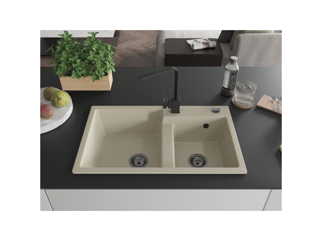 Mexen Tomas 2-komorový granitový drez s kuchynskou batériou Rita, béžový - 6516-69-670300-70