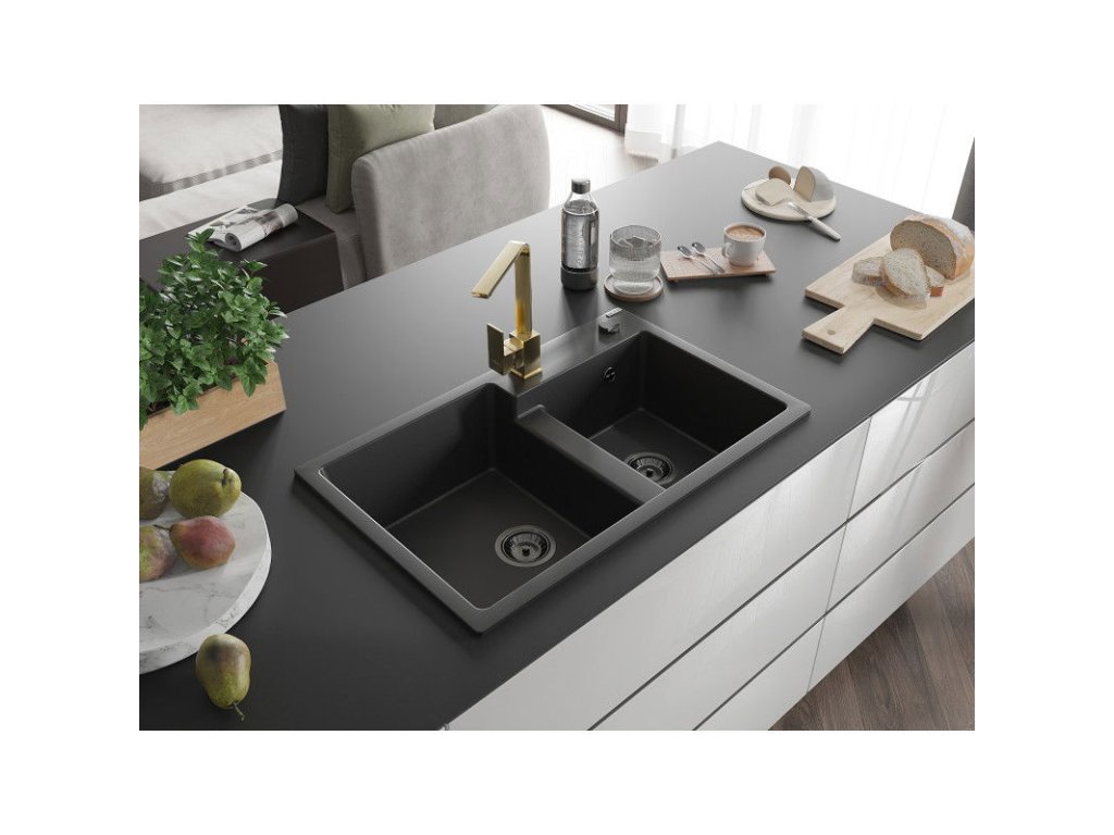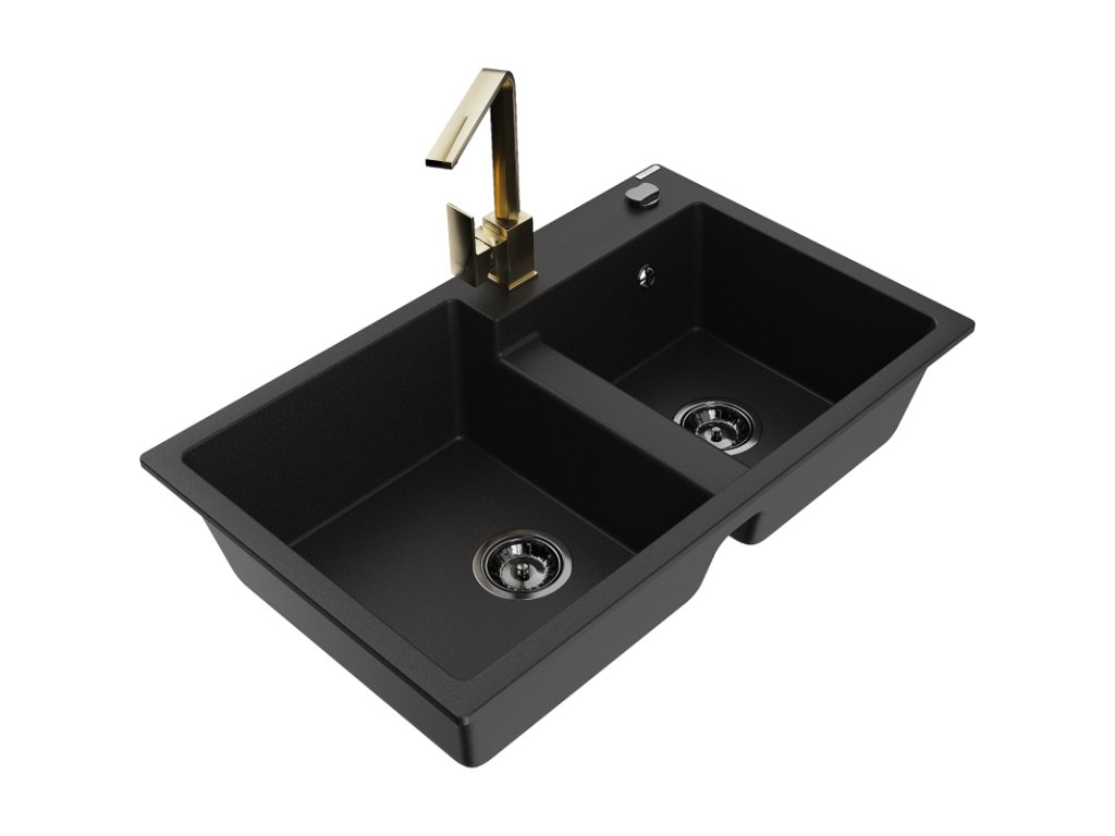 Mexen Tomas 2-komorový granitový drez s kuchynskou batériou Rita, čierny - 6516-77-670300-50-B