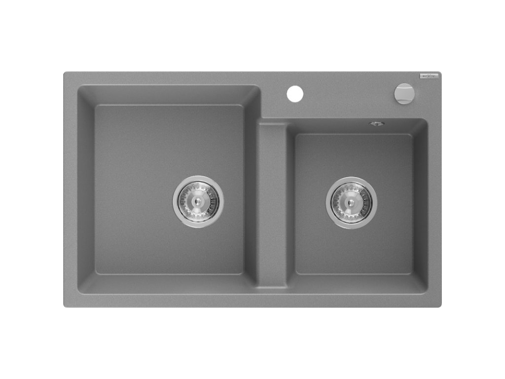 Mexen Tomas zlewozmywak granitowy 2-komorowy 800 x 500 mm, szary, syfon chrom - 6516802000-71