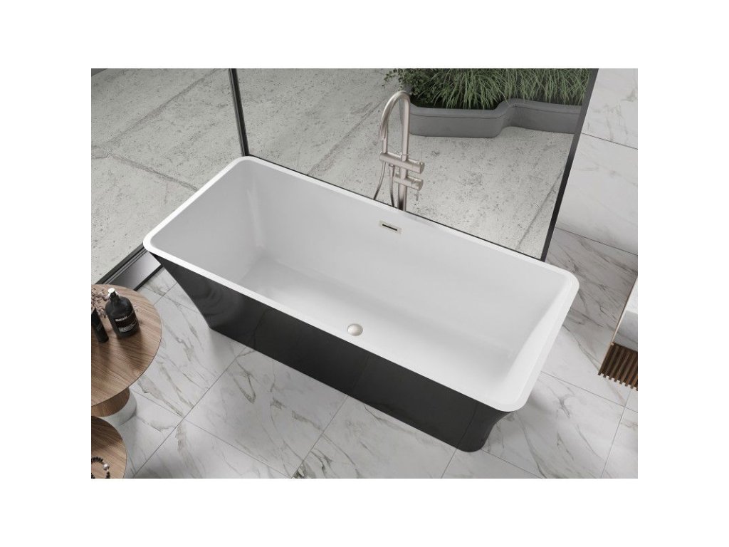 Mexen Tonia voľne stojaca vaňa 170 x 75 cm, biela/čierna, prepad z brúseného niklu - 52171707575-97