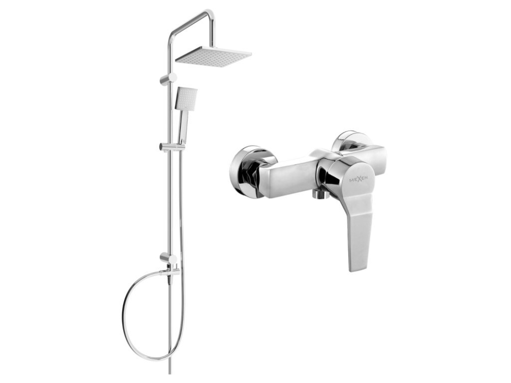 Mexen Tord nástenná sprchová súprava s dažďovou sprchou, sprchová batéria Caro, chróm - 746640200-00
