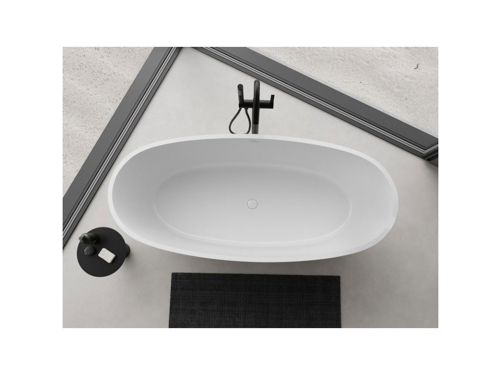 Mexen Torino voľne stojaca konglomerátová vaňa 155 x 78 cm, biely lesk - 57271557810