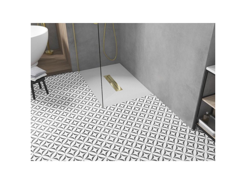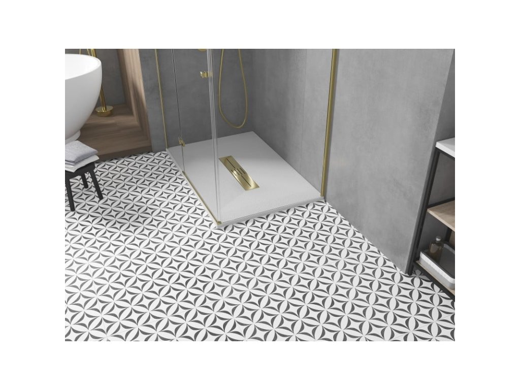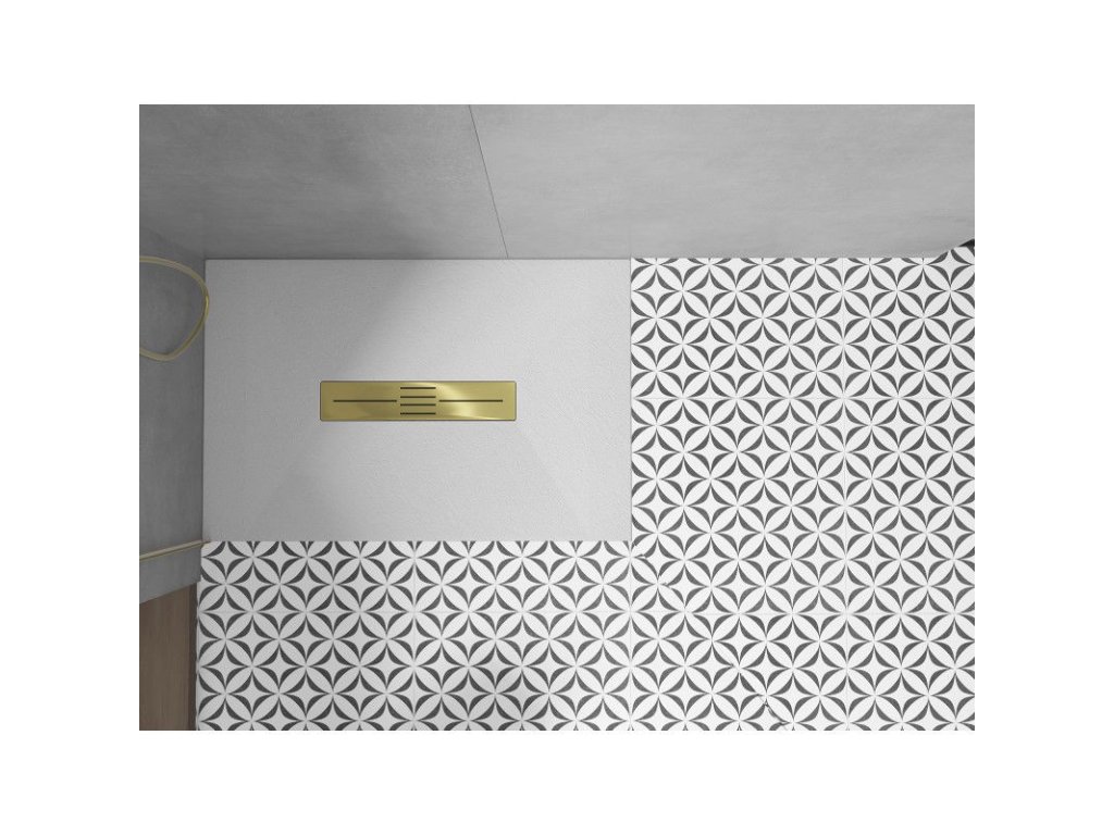 Obdĺžniková sprchová vanička SMC 120 x 70 cm je ideálnym riešením pre moderné kúpeľne. Jej mimoriadne štíhly tvar (výška len 2,6 cm) a možnosť inštalácie do podlahy alebo na podlahu poskytujú všestrannosť a eleganciu. Vďaka vysokej odolnosti proti nárazu je mimoriadne trvanlivá a odolná voči deformácii. Medzi ďalšie zaujímavosti patrí kamenná štruktúra, sifón s horným čistením a zlatá povrchová úprava rámčeka, ktorá dodáva luxusný nádych. Priemer odtoku je 90 mm, čo zabezpečuje účinný odtok vody.Dodatočné parametre