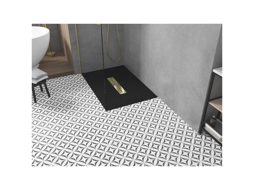 Mexen Toro obdĺžniková sprchová vanička SMC 130 x 90 cm, čierna, zlatá mriežka - 43709013-G
