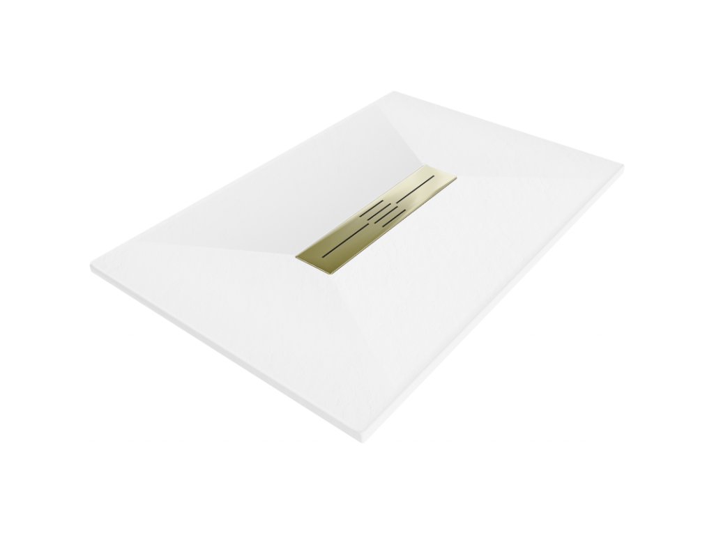 Obdĺžniková sprchová vanička Mexen Toro SMC s rozmermi 140 x 80 cm je ideálnym riešením do každej kúpeľne. Jej moderná biela farba a zlatá mriežka jej dodávajú elegantný nádych. Vďaka svojej ultratenkej konštrukcii (2,6 cm) a robustnému materiálu SMC je sprchová vanička mimoriadne trvanlivá a odolná voči deformácii. Okrem toho je vďaka možnosti rezania a montáže vo vodorovnej polohe alebo na podlahu veľmi univerzálna. Pre ešte väčšiu funkčnosť je súčasťou balenia sifón s priemerom odtoku 90 mm.Dodatočné parametre