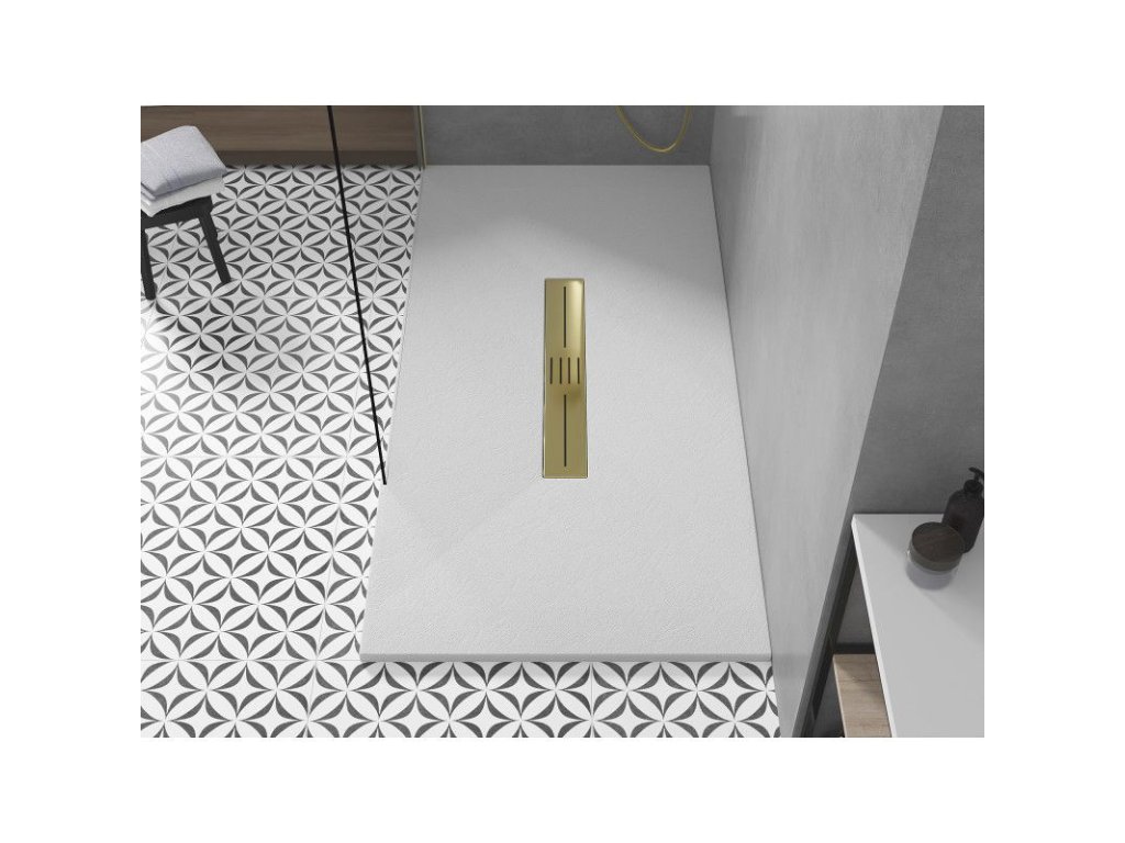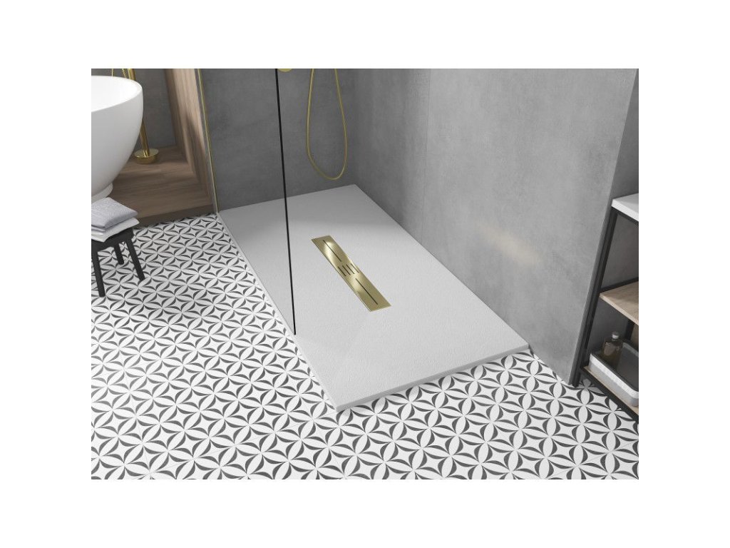 Mexen Toro je obdĺžniková sprchová vanička s rozmermi 180 x 80 cm, vyrobená z odolného plastu SMC, ktorý sa nedeformuje. Jej moderná kamenná štruktúra v kombinácii s bielou farbou a zlatou mriežkou vytvára elegantný kúpeľňový prvok. Vďaka možnosti inštalácie na podlahu alebo do podlahy, ako aj praktickým rozmerom odtoku (90 mm) a sifónu, ktorý je súčasťou balenia, poskytuje sprchová vanička vysokú funkčnosť a estetiku. Mimoriadne štíhly dizajn a odolnosť proti nárazom zvyšujú jej stabilitu a trvanlivosť.Dodatočné parametre