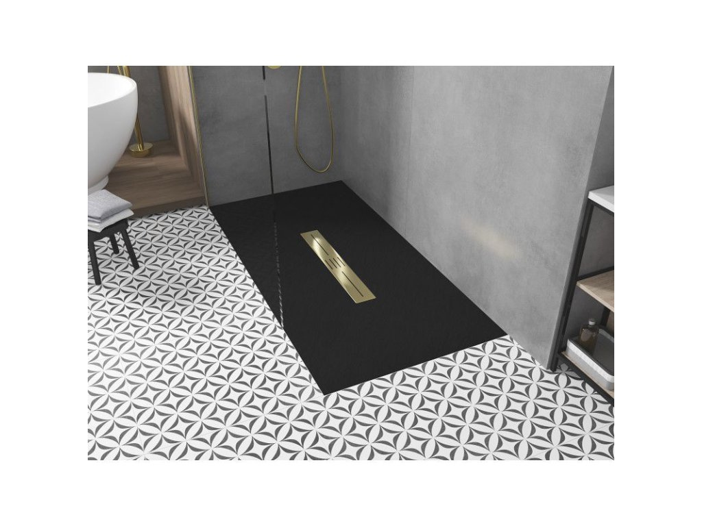 Mexen Toro obdĺžniková sprchová vanička SMC 200 x 70 cm, čierna, zlatá mriežka - 43707020-G