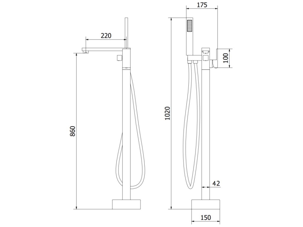 Mexen Urano voľne stojaca vaňová batéria, čierna - 75233-70