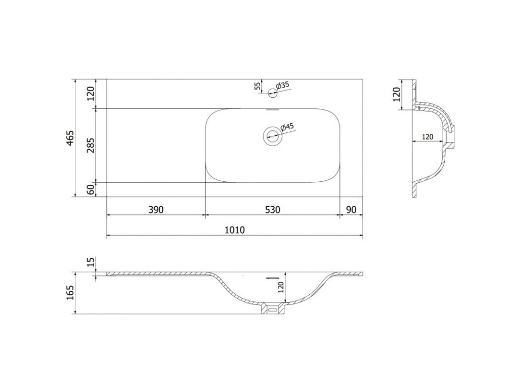 Mexen Vela umývadlo pod omietku pravé 101 x 46,5 cm, čierna matná - 25231071P