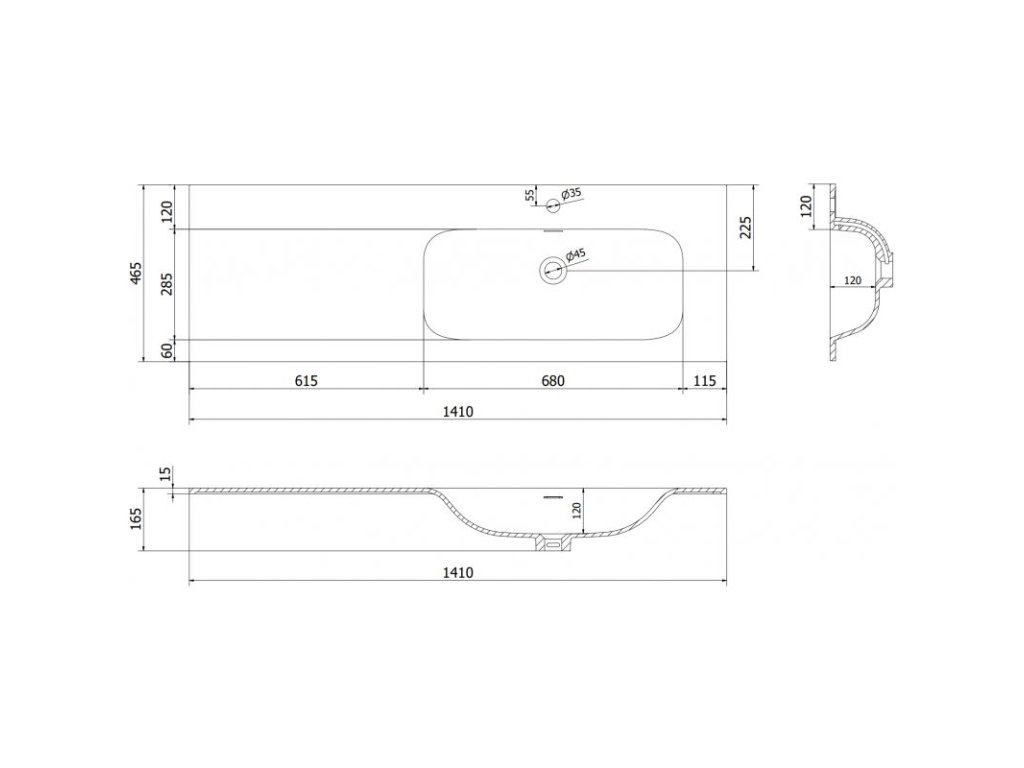 Mexen Vela umývadlo pod omietku pravé 141 x 46,5 cm, biele matné - 25231401P