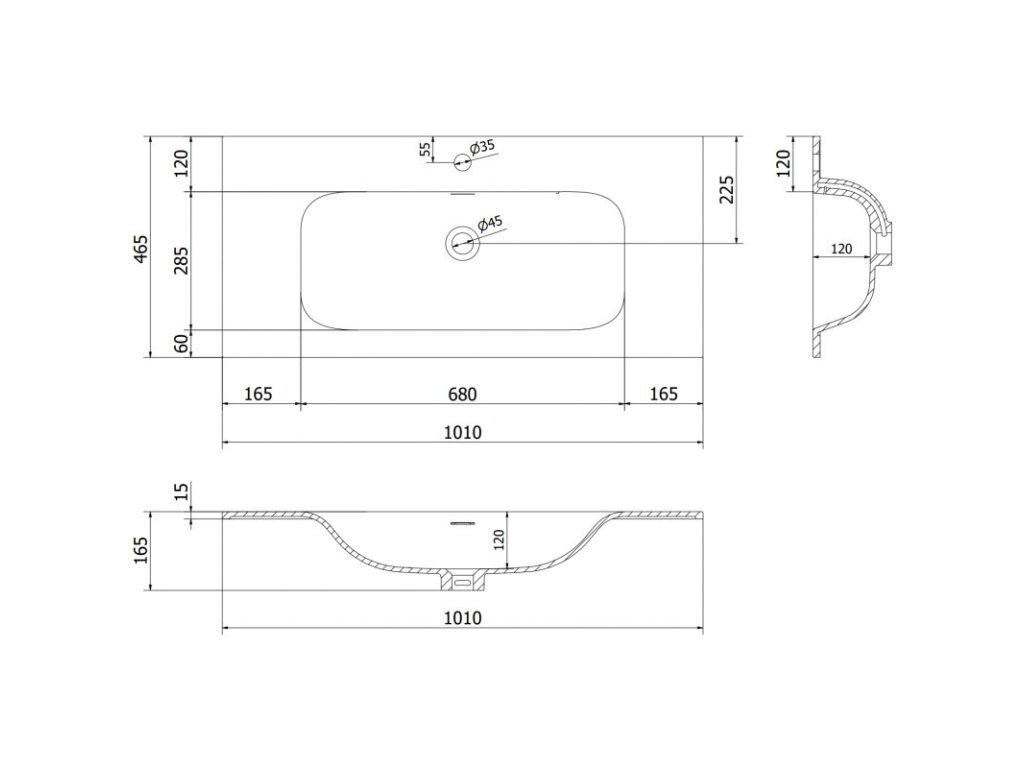 Mexen Vela vstavané umývadlo 101 x 46,5 cm, biely lesk - 25231000
