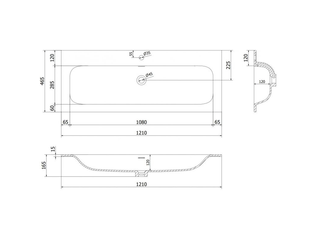 Mexen Vela vstavané umývadlo 121 x 46,5 cm, biely lesk - 25231200