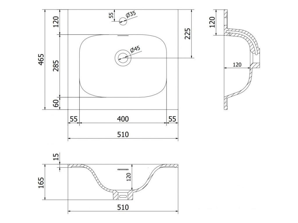 Mexen Vela vstavané umývadlo 51 x 46,5 cm, biela matná - 25235001