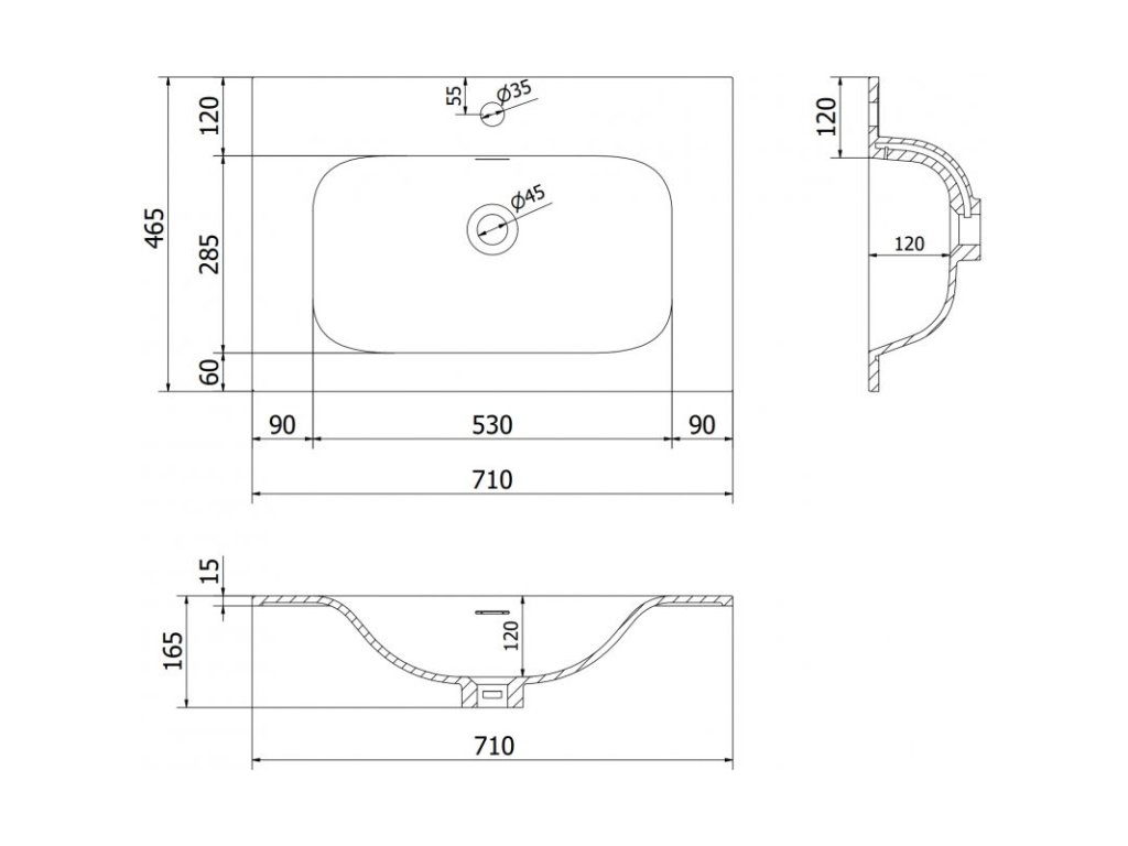 Mexen Vela vstavané umývadlo 71 x 46,5 cm, čierna matná - 25237071