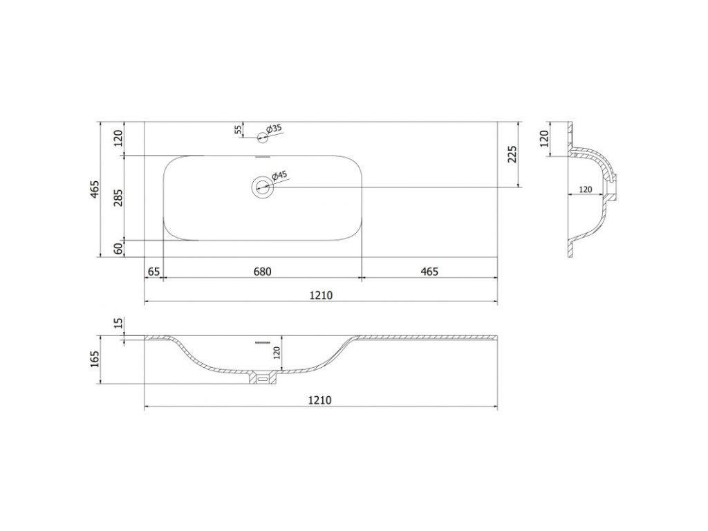Mexen Vela vstavané umývadlo ľavé 121 x 46,5 cm, biele matné - 25231201L