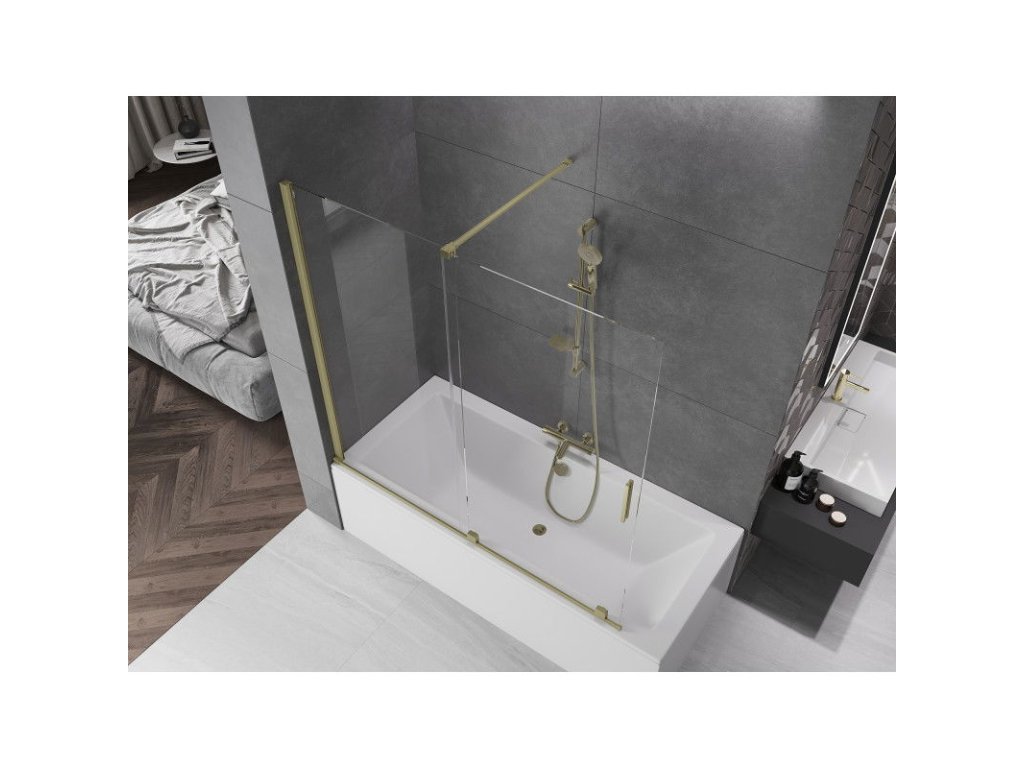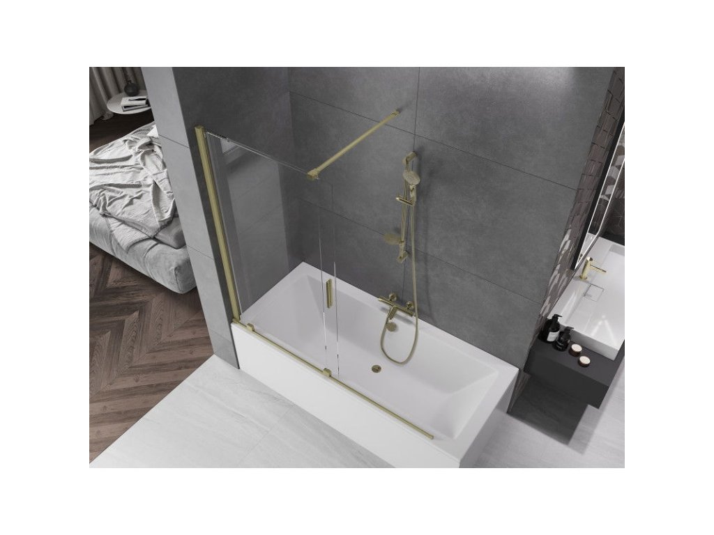 Mexen Velar 2-krídlová posuvná vaňová zástena 160 x 150 cm, transparentná, brúsené zlato - 896-160-000-01-55