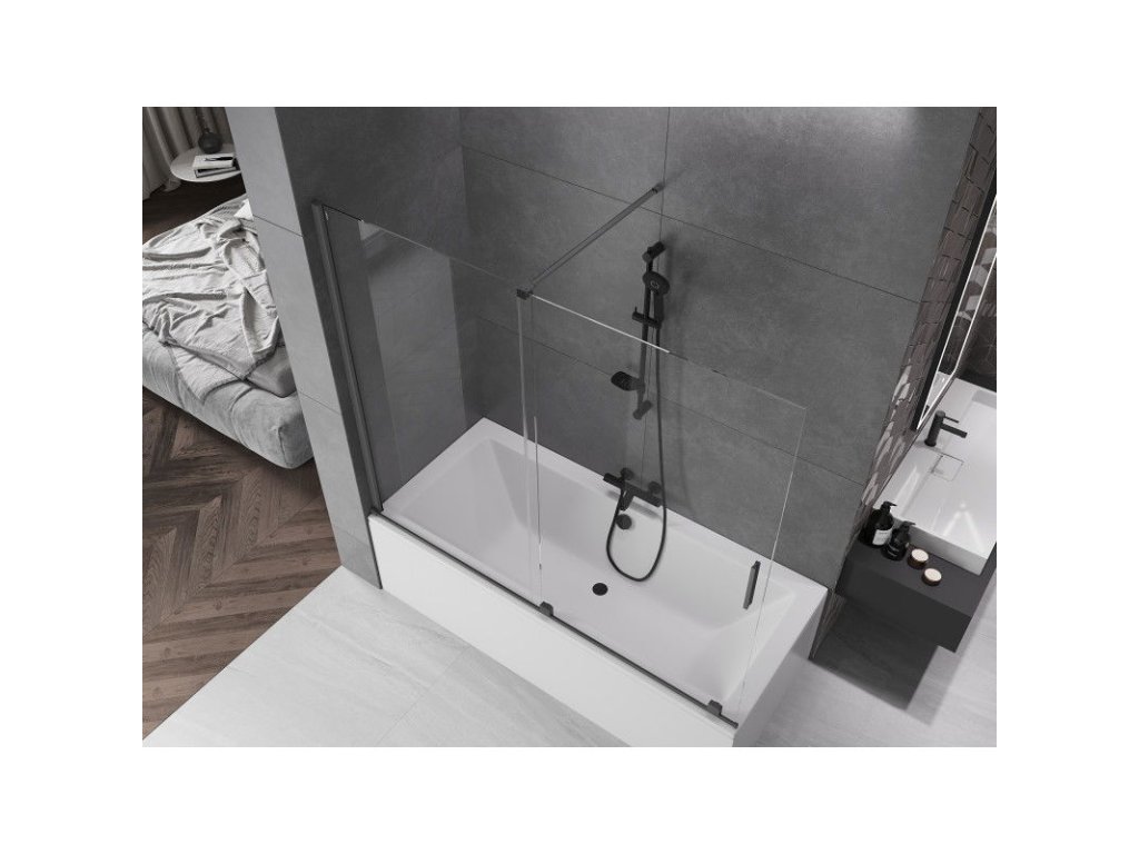 Mexen Velar 2-krídlová posuvná vaňová zástena 180 x 150 cm, transparentná, pištoľovo šedá kartáčovaná - 896-180-000-01-66
