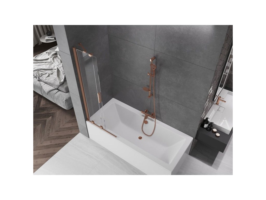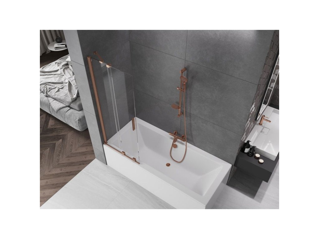 Mexen Lunar L pravá 2-krídlová vaňová zástena 120 x 150 cm, transparentná, ružové zlato - 897L-120-100-60-00-P