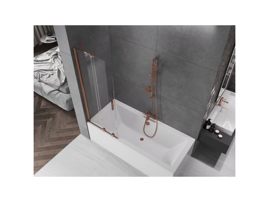Mexen Velar 2-krídlová posuvná vaňová zástena 70 x 150 cm, transparentná, ružové zlato - 896-070-000-01-60