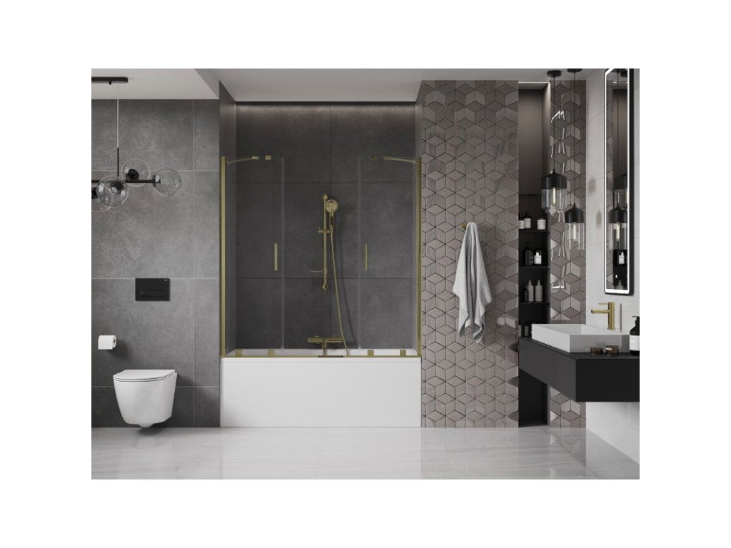 Mexen Lunar L 2-krídlová vaňová zástena ľavá 120 x 150 cm, transparentná, brúsené zlato - 897L-120-100-55-00-L